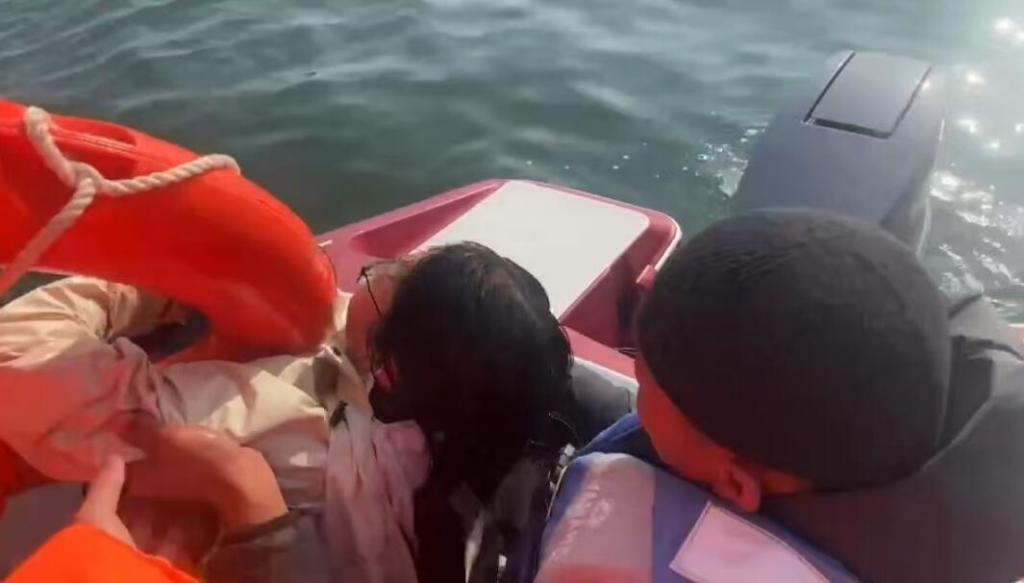 “当时我们队员发现了,尝试抛救生圈等营救,但是女子离着岸边太远了。”侯丰海岸救援队队长侯兴岭说,在这千钧一发的时刻,一艘救援艇赶到现场。